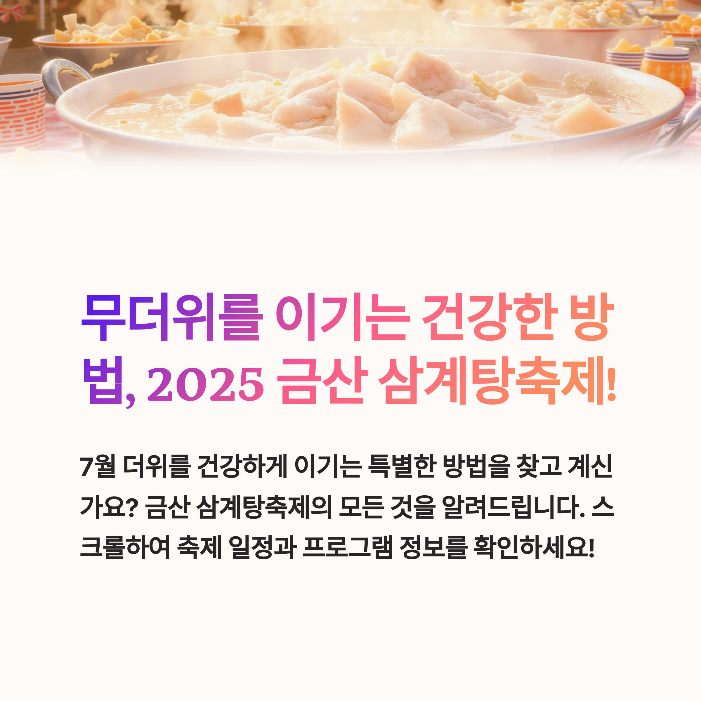 2025 금산 삼계탕축제는 건강과 미식을 주제로 한 대표적인 여름 축제입니다.