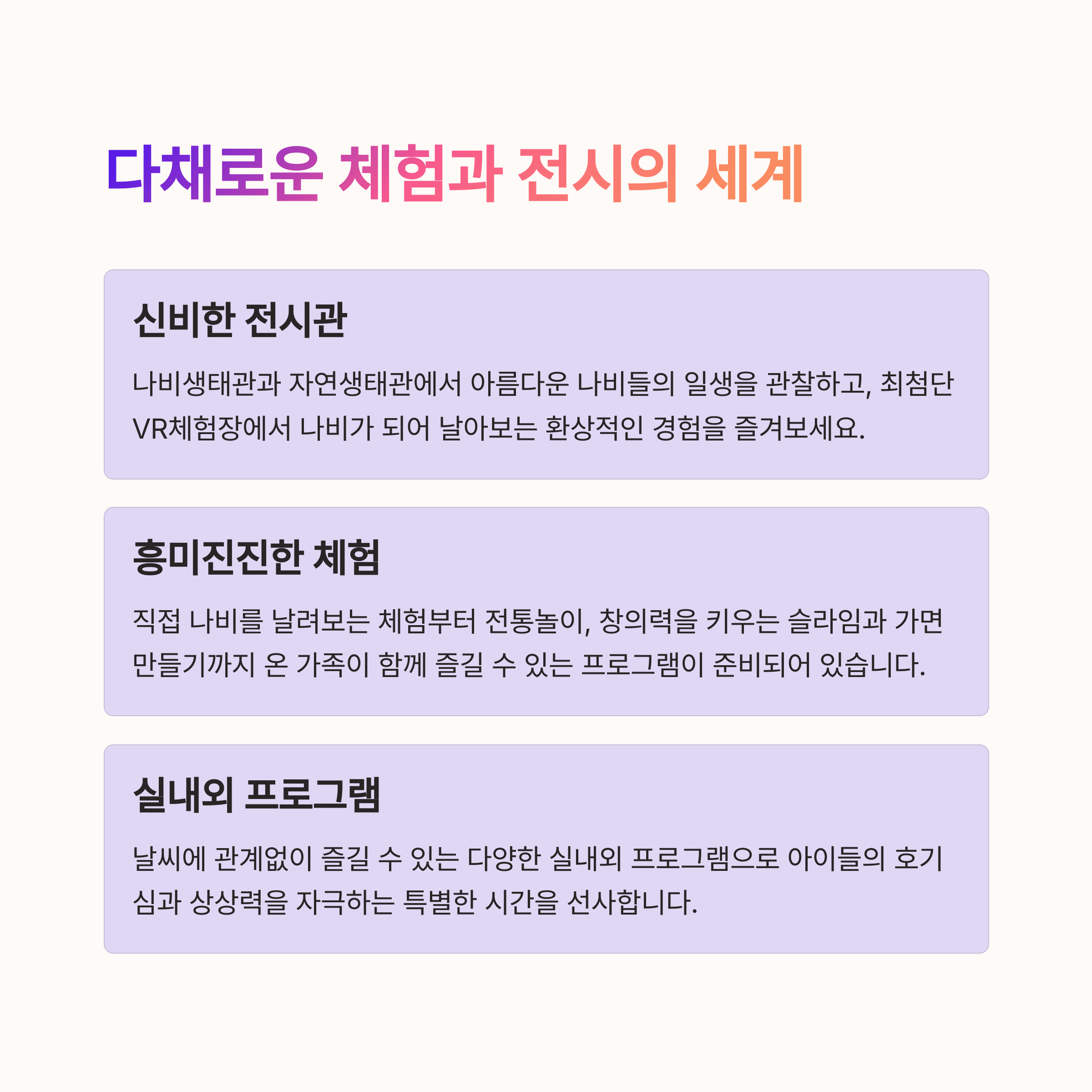 꼭 방문해 나비와 자연이 어우러진 감동을 직접 느껴보시길 바랍니다.