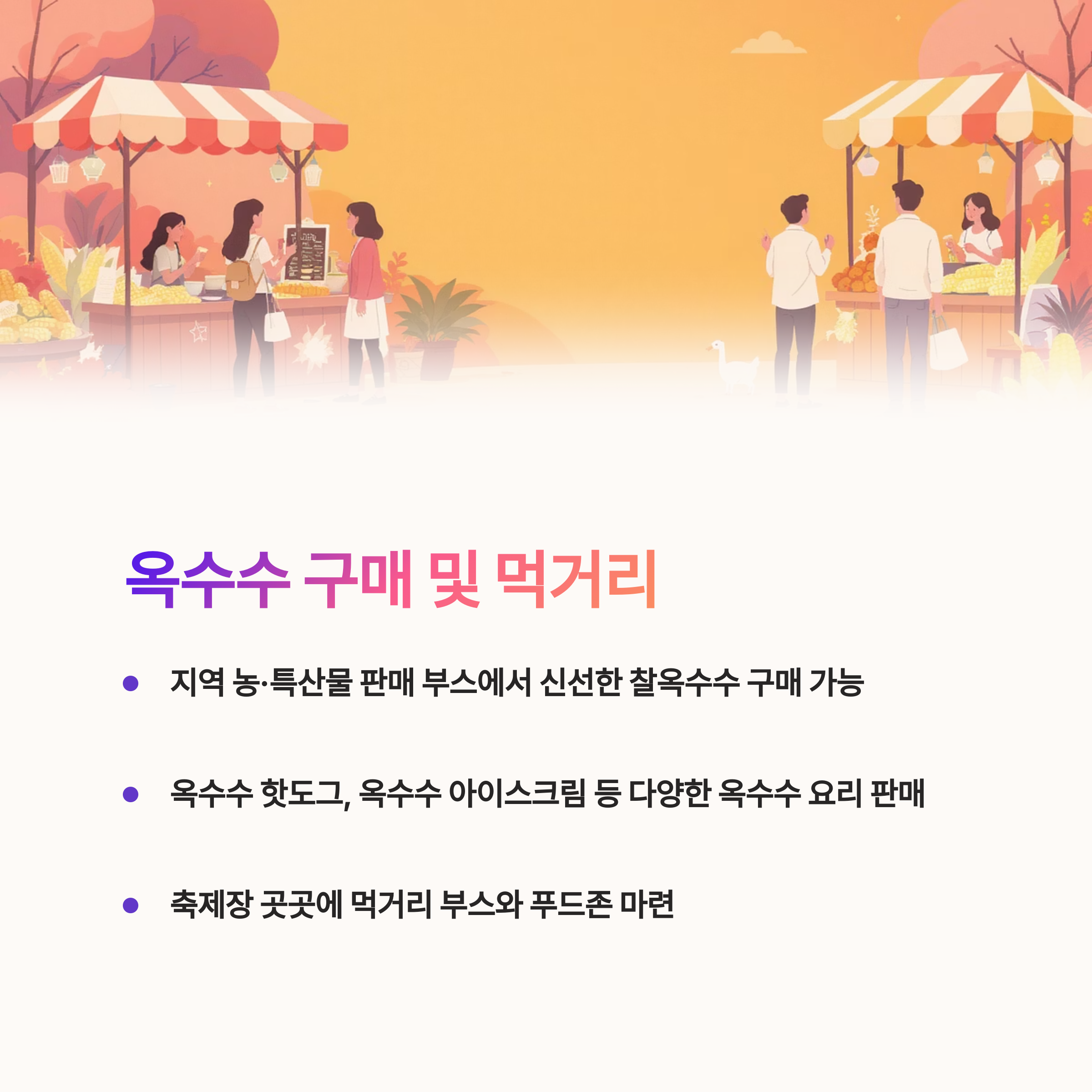 축제는 단순히 옥수수를 즐기는 것을 넘어 지역 문화를 체험하며 즐거운 여름을 보내기에 최적의 장소로 손꼽히고 있습니다.