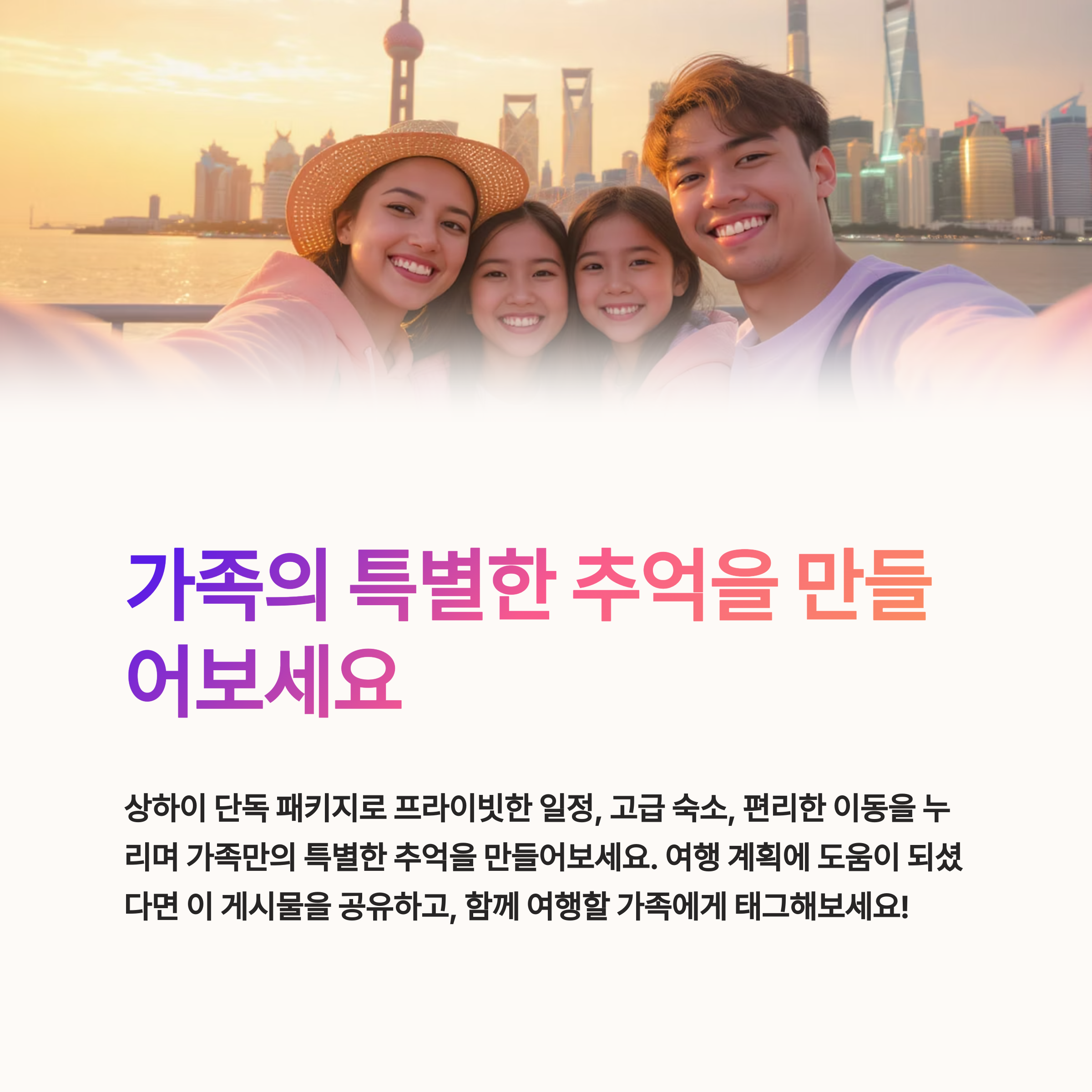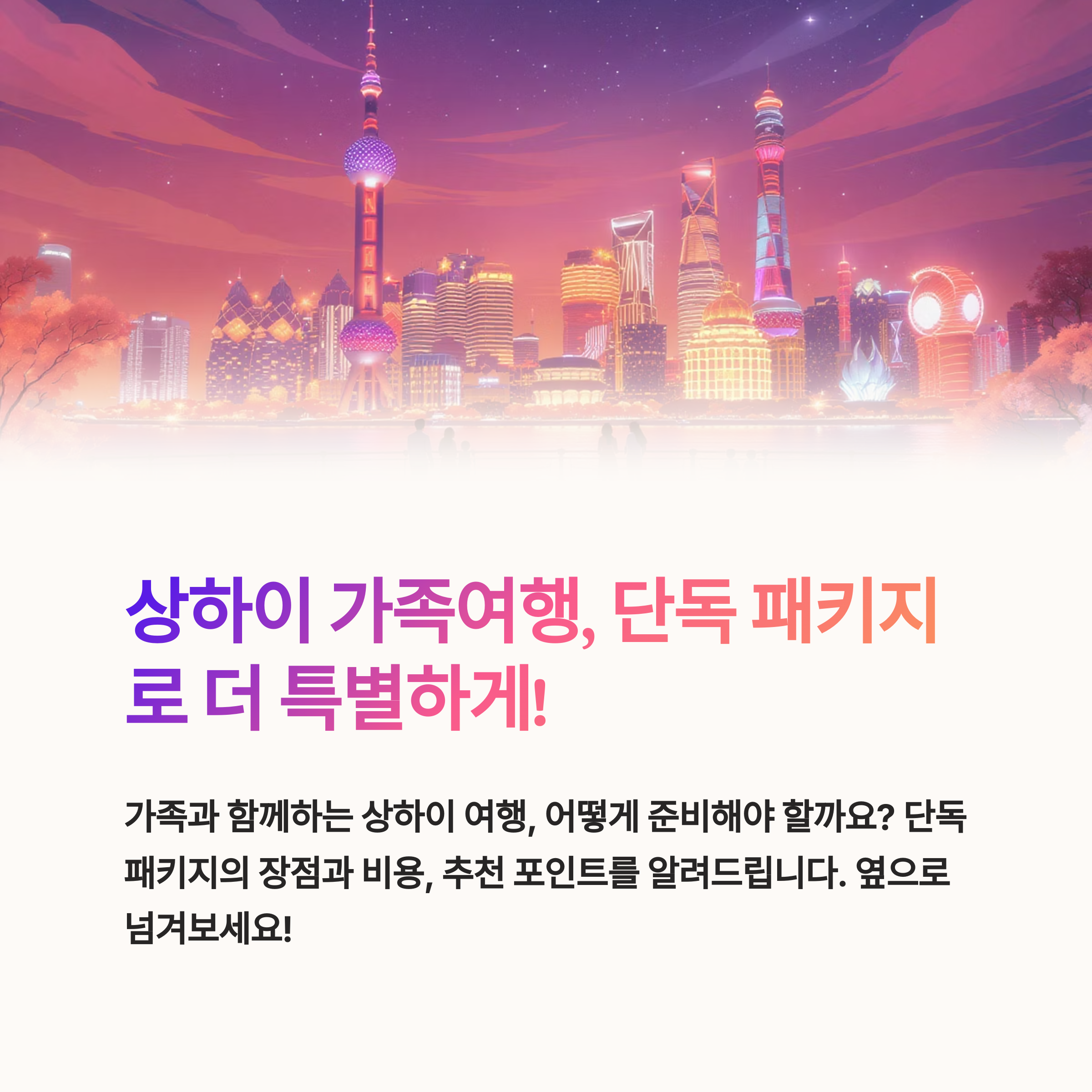 상하이 단독 패키지는 가족단위 첫 여행지로 최적화된 선택지 중 하나입니다.