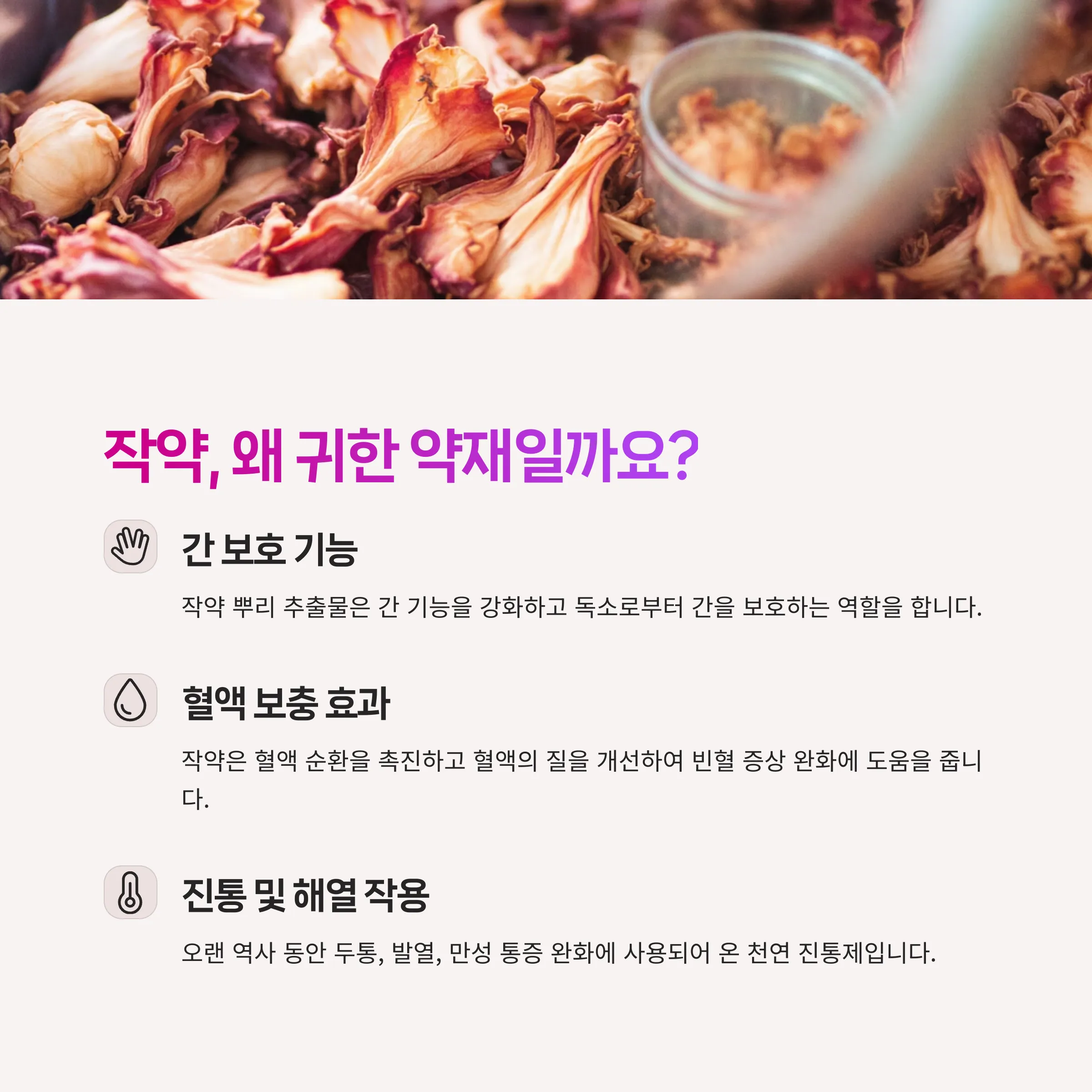 - 전국 최초로 작약 약초 주산지로 지정된 곳