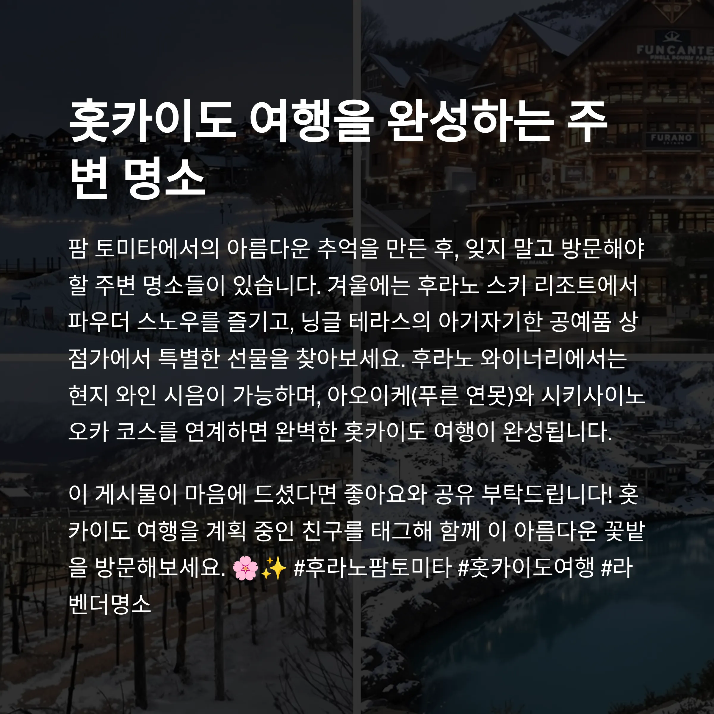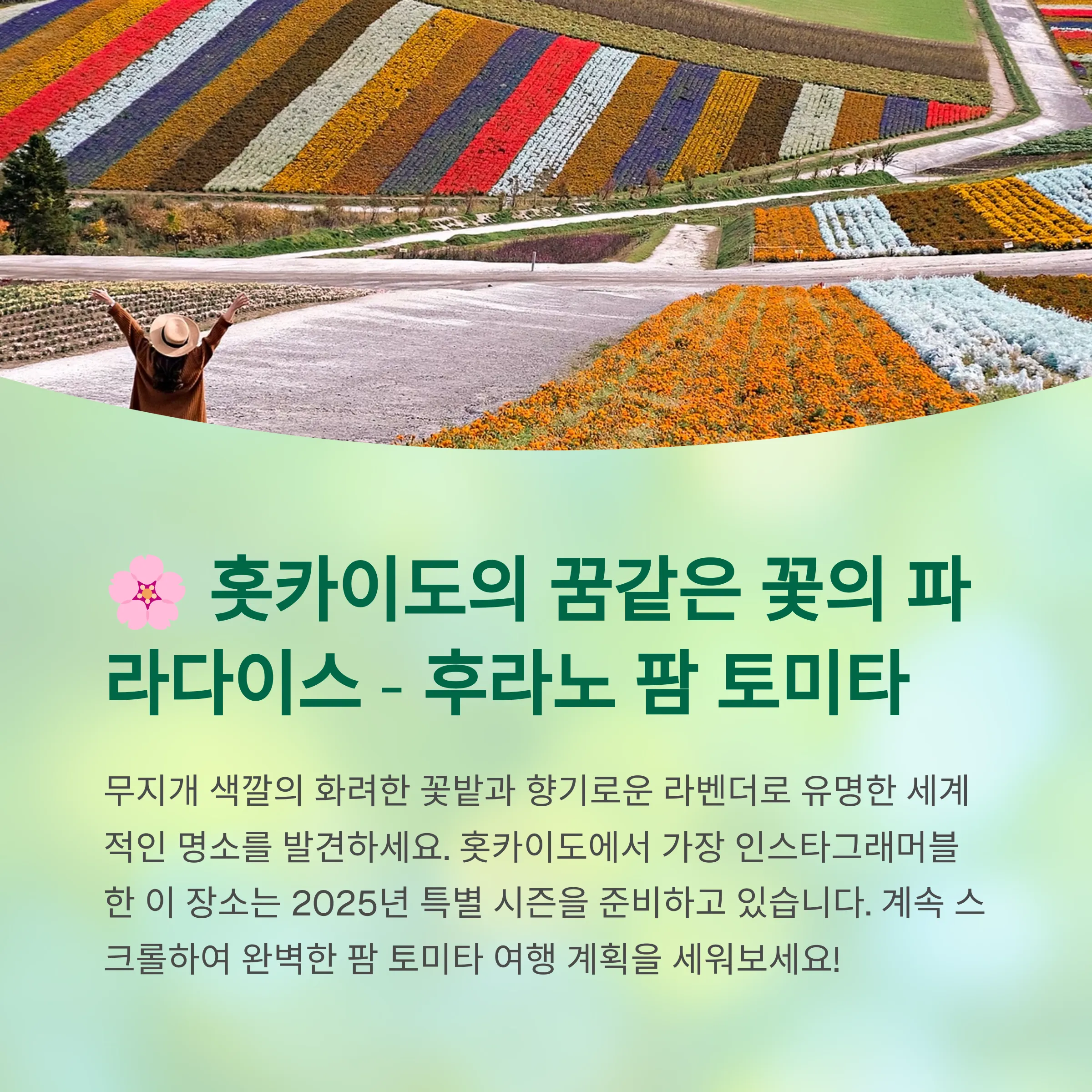 이번 포스트에서는 아름다운 후라노 팜 토미타를 중심으로 한 가족 여행 일정과 꿀팁을 공유드립니다.