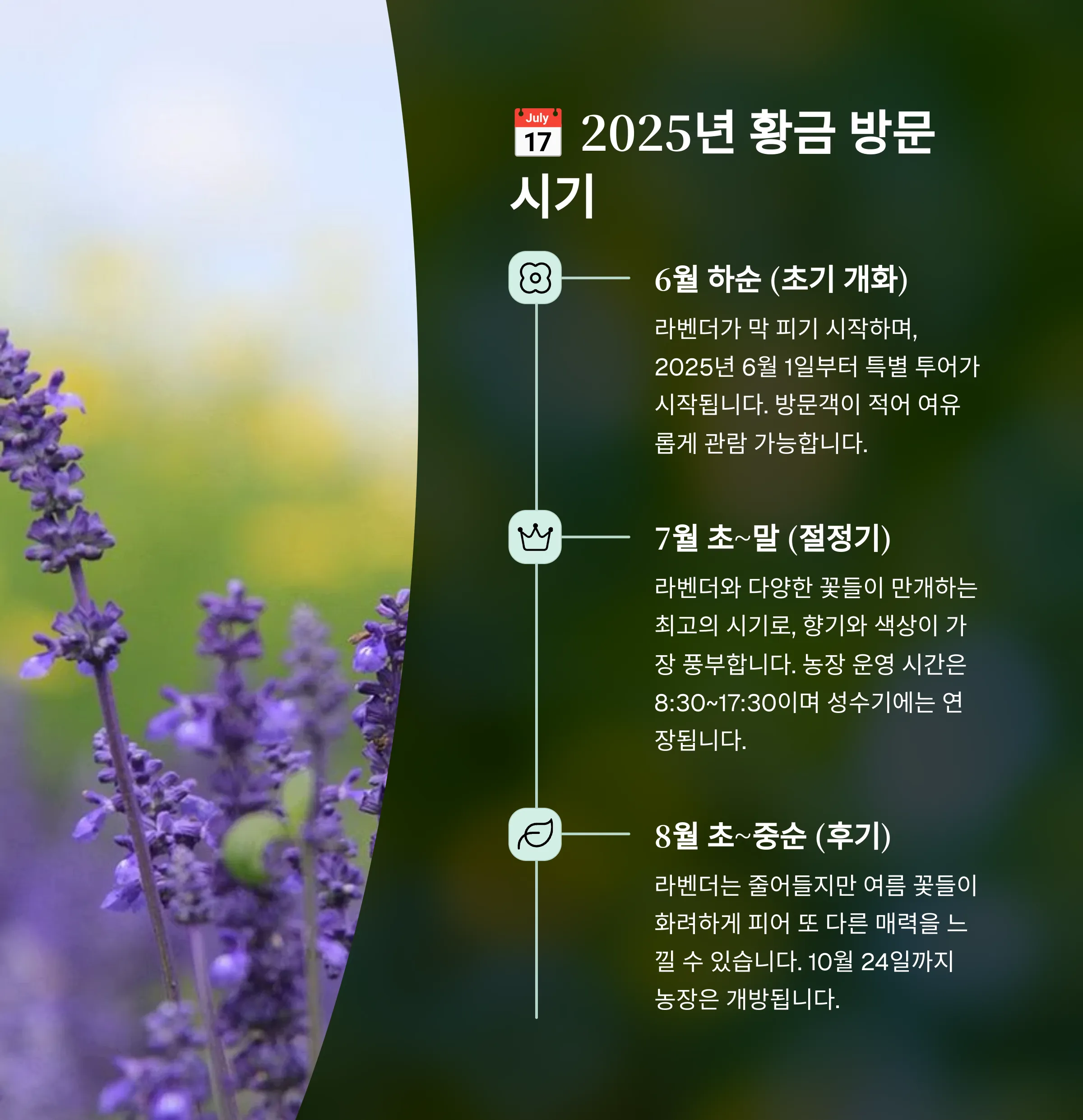 특히 여름에는 라벤더 꽃밭이 장관을 이루어 사진 찍기 좋은 명소로도 유명합니다.