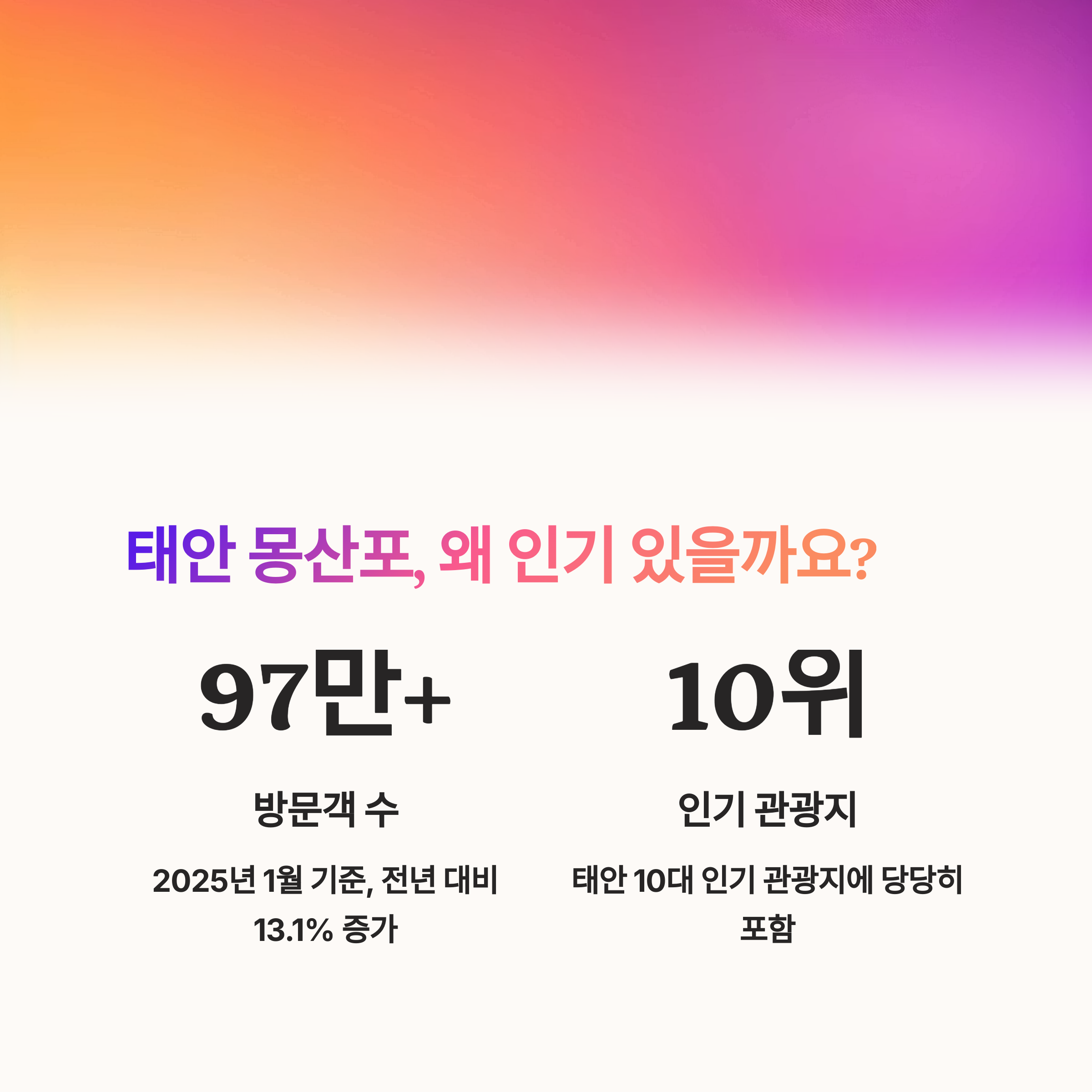 | 2025년 태안 방문객 수 (1월 기준) | 97만 9,107명 (+13.1%) |