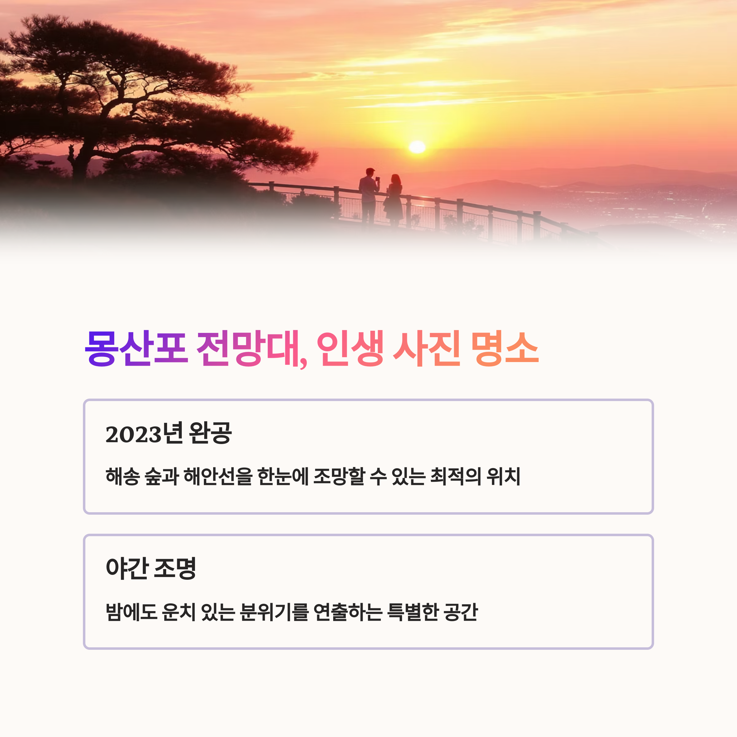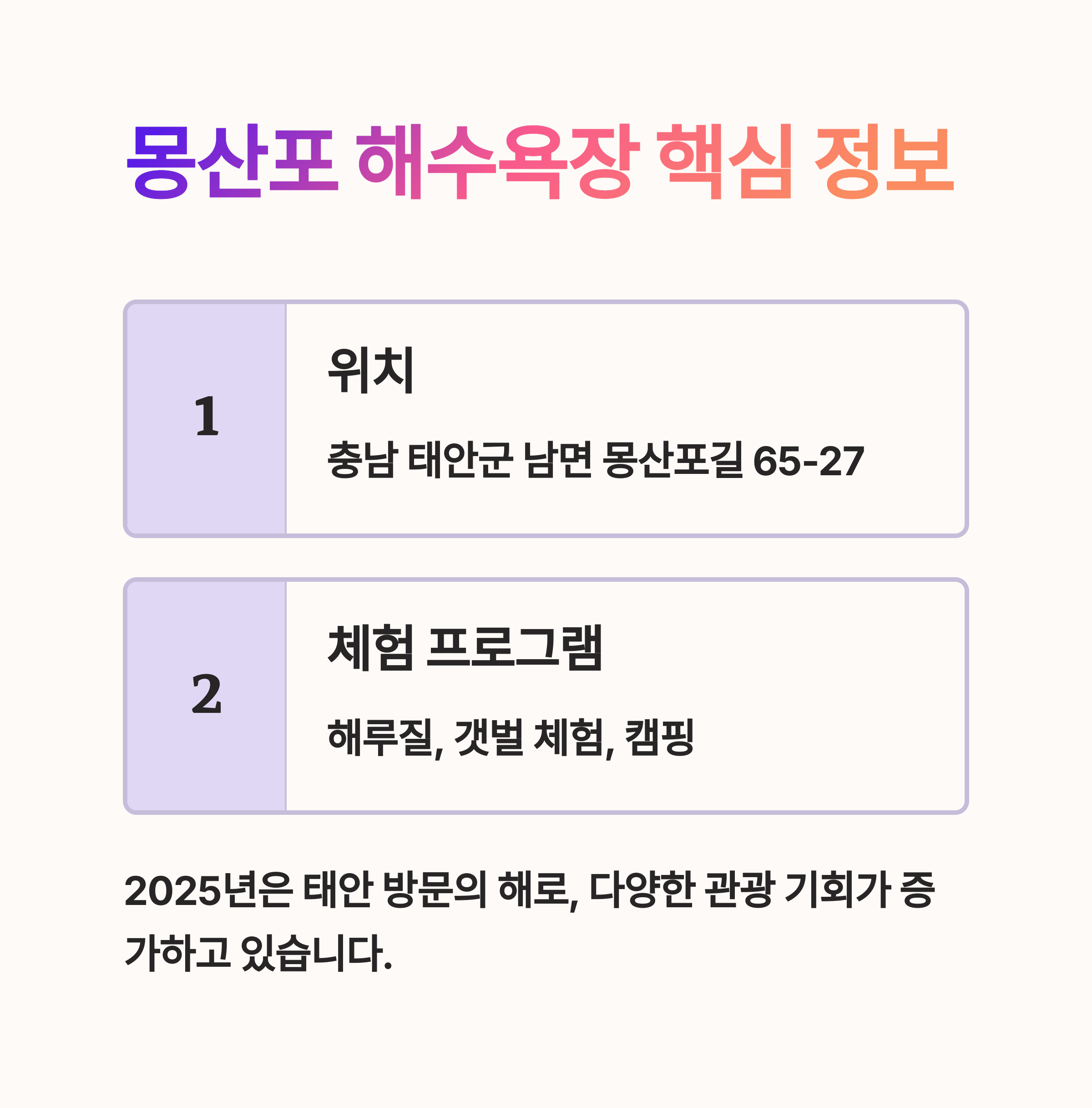 | Q. 2025년에 특히 주목해야 할 몽산포 전망대의 장점은 무엇인가요? |